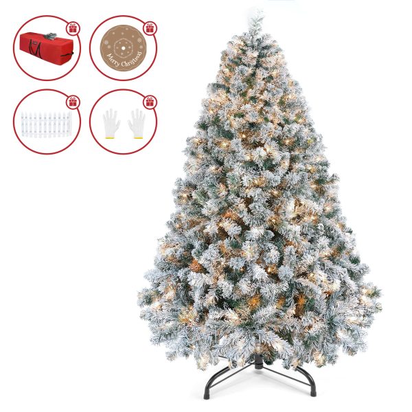 The VAVSEA 7.5FT Artificial Christmas Tree is a stunning holiday centerpiece, featuring snow-flocked branches for a winter wonderland effect. Pre-lit with 350 warm white lights, it creates a cozy and festive ambiance. With 1200 tips, it boasts a full, lush appearance. This tree also comes with a convenient storage bag, a Christmas tree skirt, and a decorative Christmas fence, making it the perfect addition to your holiday decor. Enjoy the holiday season with this easy-to-set-up, beautifully designed tree!